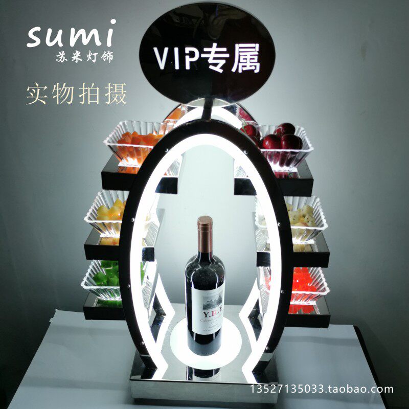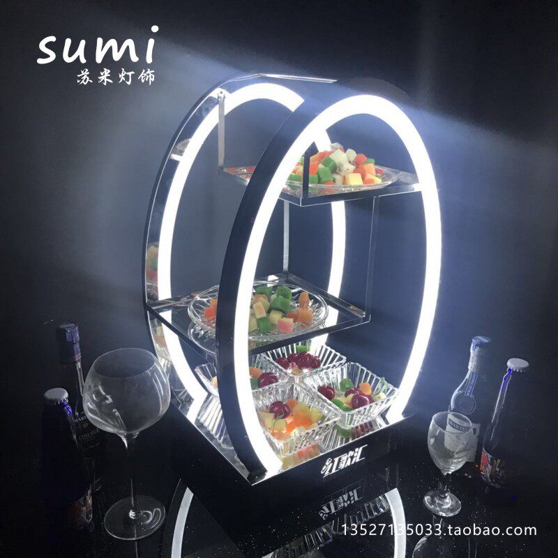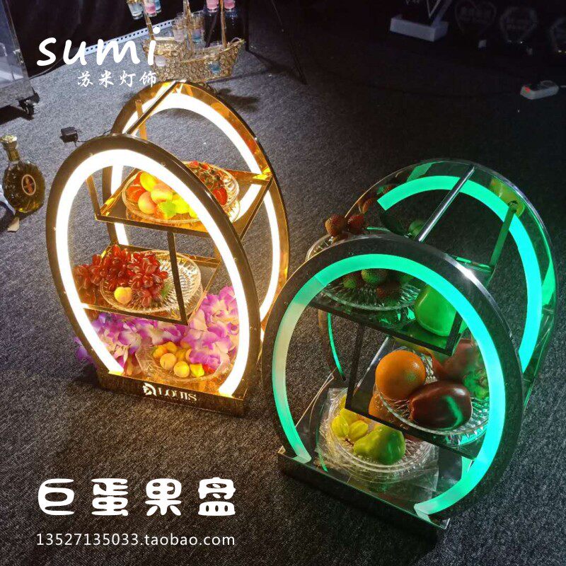 Bar egg-shaped luminous fruit tray stainless steel three-layer fruit tray frame creative upscale LED charging luminous fruit tray frame