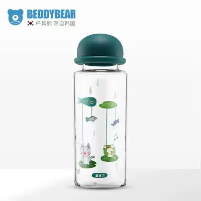 Korean Cup bear new fisherman's hat glass for men and women students portable water Cup leak proof with lid transparent water Cup