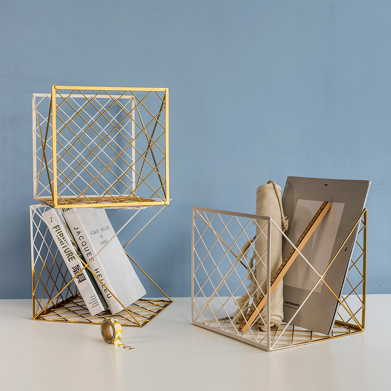Nordic Ins Light Lavish Salt Ensemble Brief Metal Tabletop Magazine Book Finishing Rack Home Toy Containing Basket Shelve