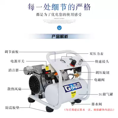 Gomez panel air compressor oil-free silent household small air pump woodworking frame air compressor 220V