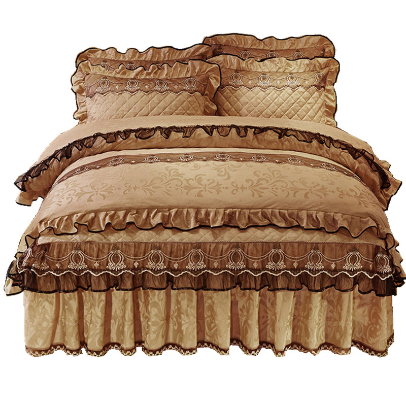 European-style velvet bed skirt-type four-piece quilted thickened bedspread 4-piece autumn and winter warm quilt cover bedding