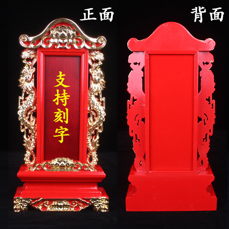 Free lettering solid wood wood plate position with gold double-dragon red wooden card bit base pair optional