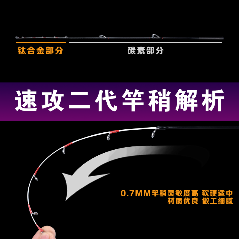 Tony black snapper raft fishing rod quick attack second-generation sea fishing semi-titanium alloy full set of bridge raft rod slightly cast fishing boat fishing rod