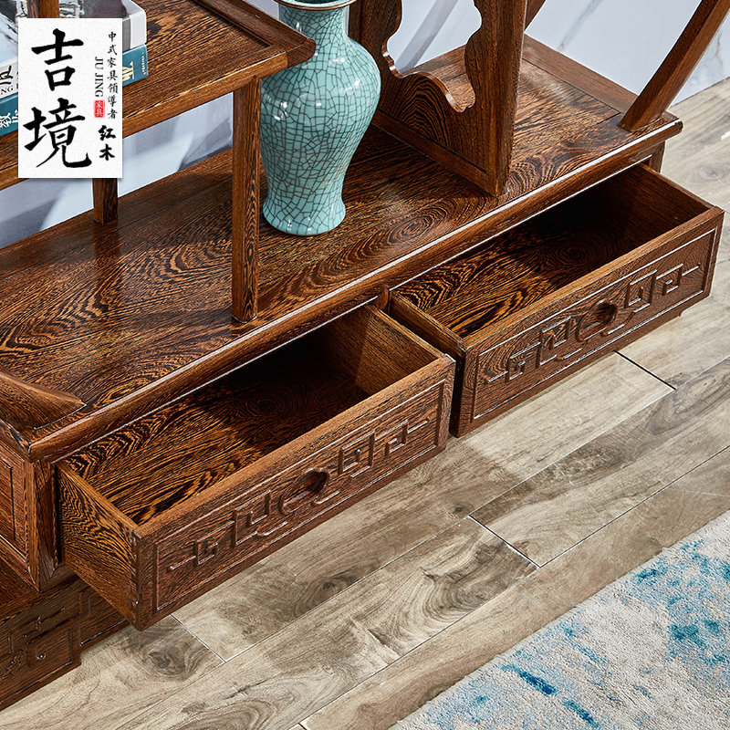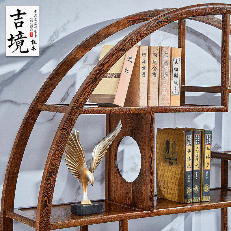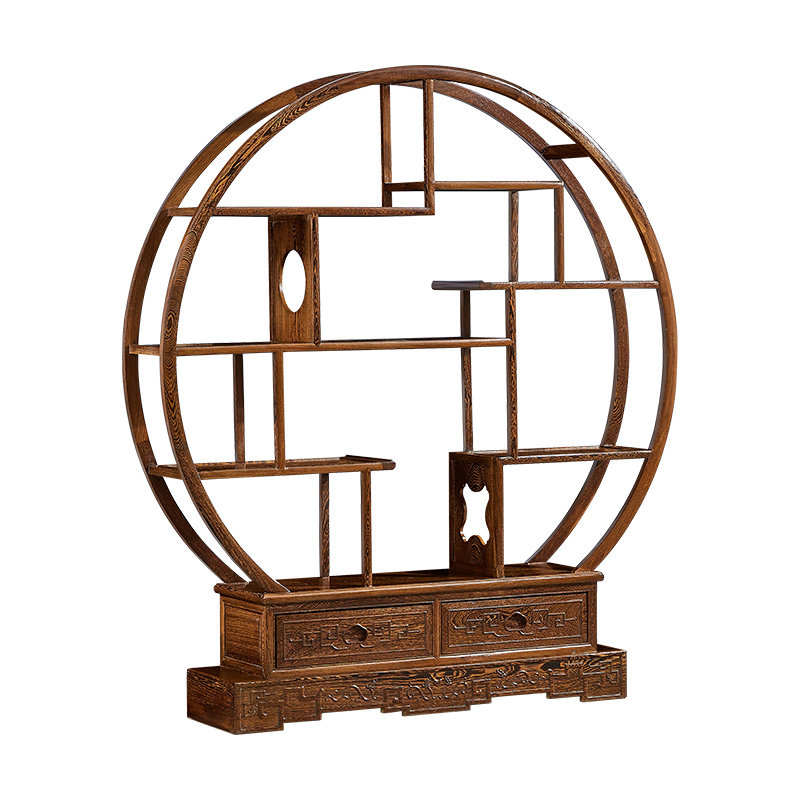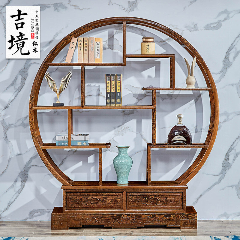 Mahogany chicken wing wood large circle Bogu frame solid wood Duobaoge tea room living room antique frame Chinese Zen porch cabinet