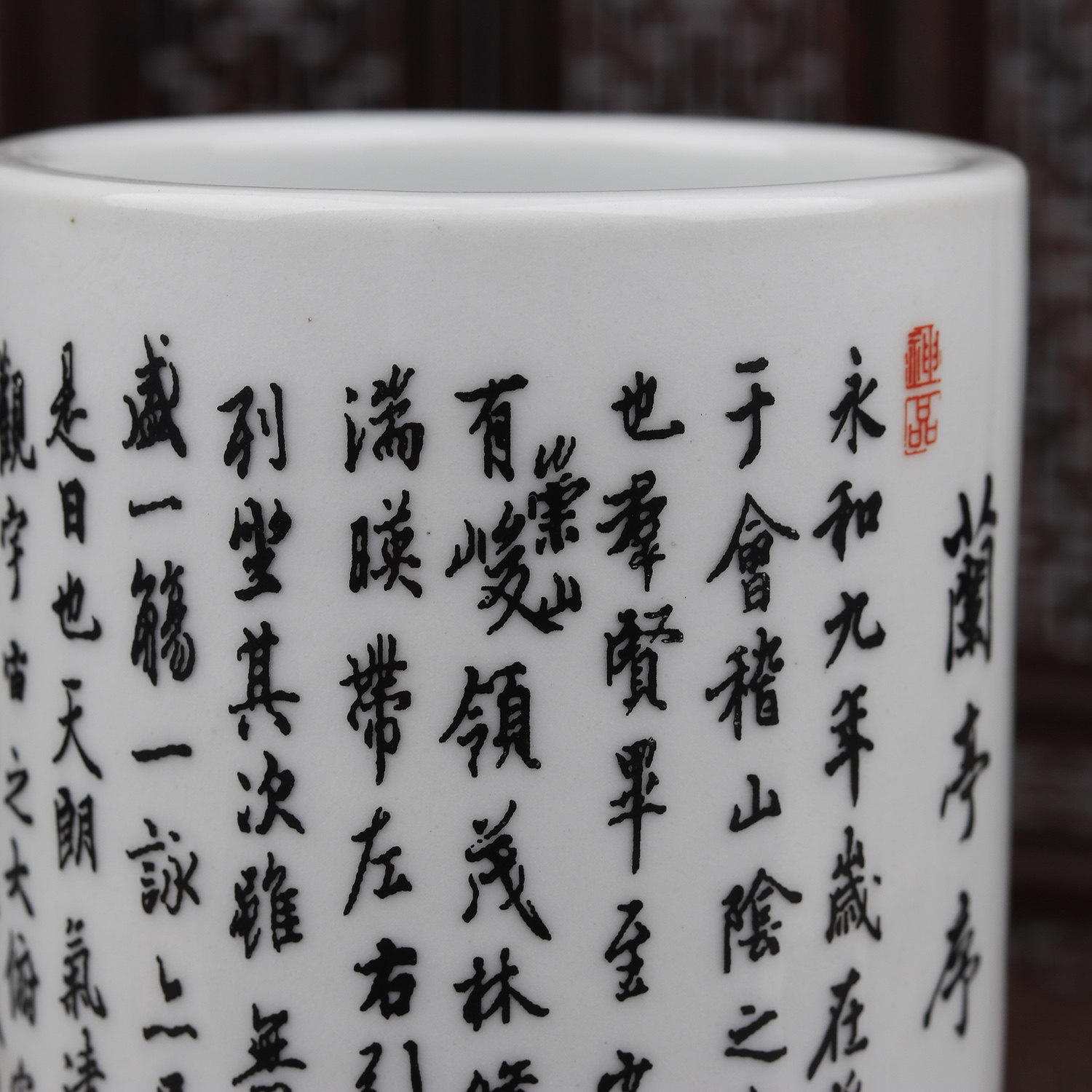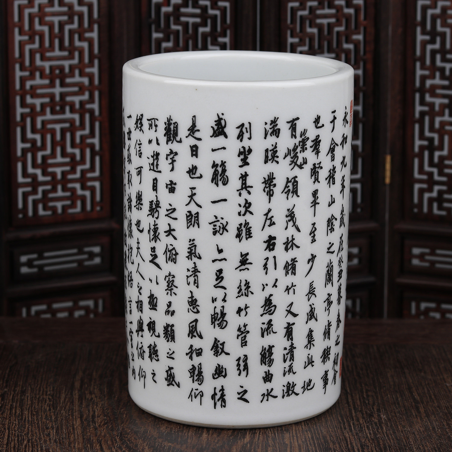 Retro Qing Dynasty Guangxu famille rose Wang Xizhi's "Lanting Preface" full text original photocopy text pattern small pen container