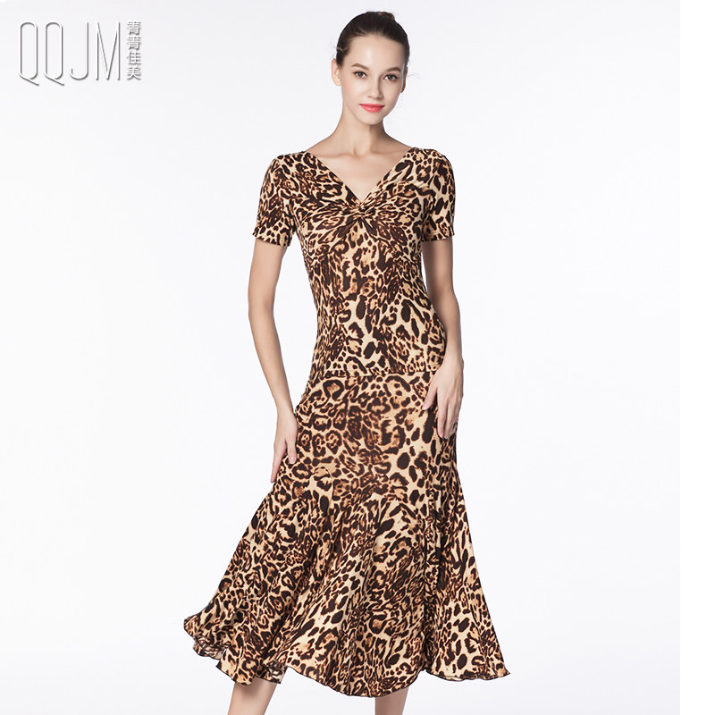 Modern Dance Dress 2021 New Women's Latin Dance Waltz International Dance Costume Leopard Print Slim Dress