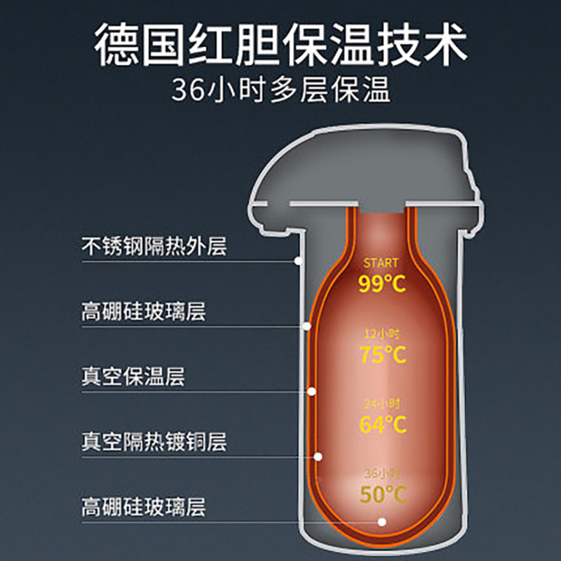 German supkit pneumatic thermos insulation pot Household large-capacity pressing kettle glass liner 3L