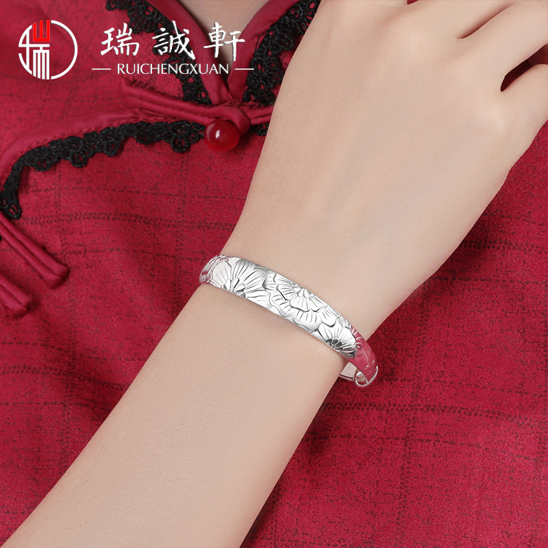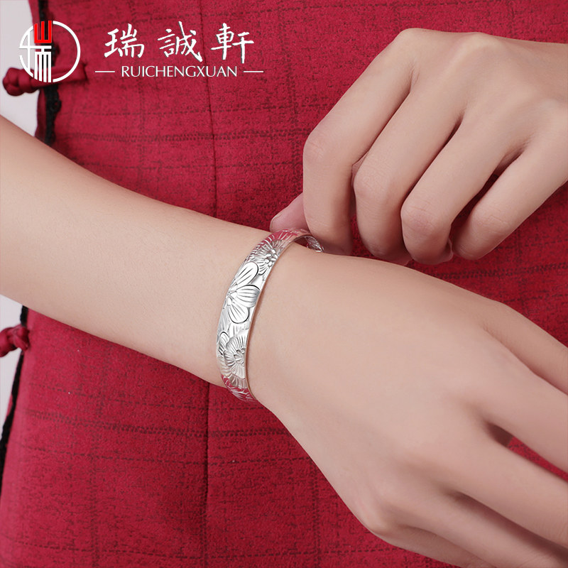 Mother's Day gift silver bracelet Mom Solid 9999 Pure Silver Bracelet Children Send Mother-in-law Birthday Foot Silver Jewelry