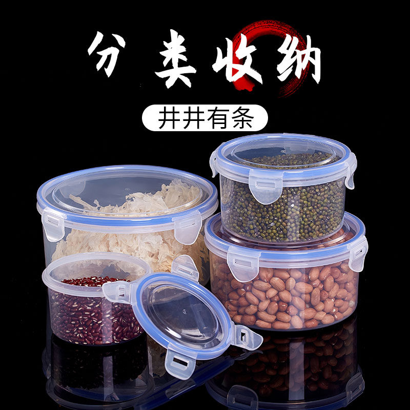 Commercial buckle refrigerator special storage fresh box Microwave oven food grade transparent round small plastic sealed lunch box large
