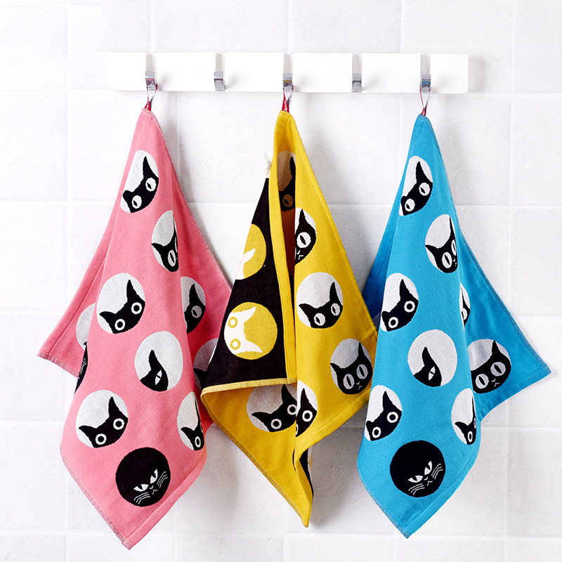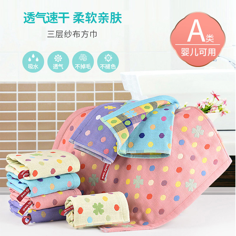 Gauze towel pure cotton face wash female household absorbent water does not drop hair small square towel square square towel hanging cute
