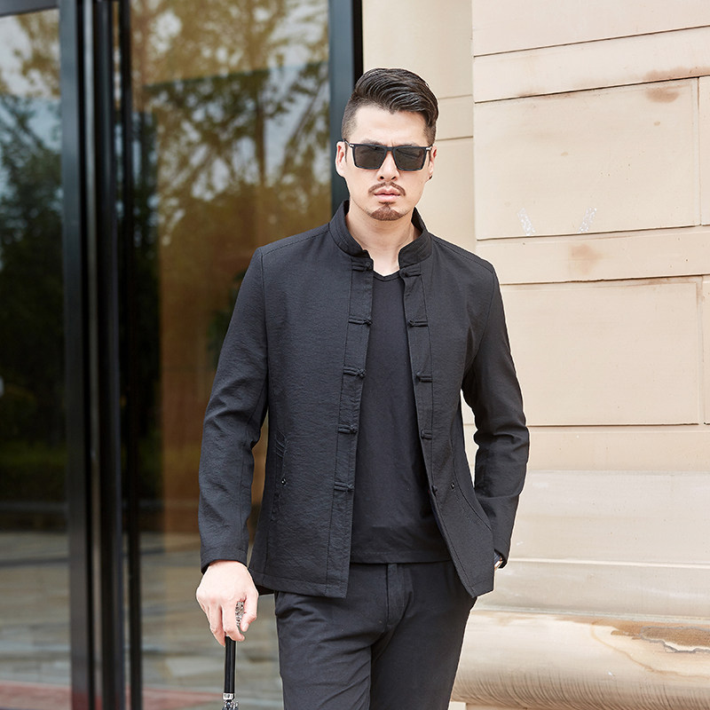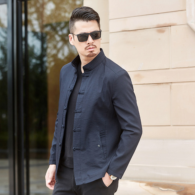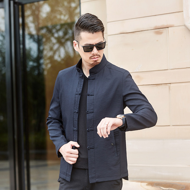 Chinese style men's cotton Chinese style cotton jacket in mid-age disc button on the middle aged long sleeve cotton quality in the spring and autumn.