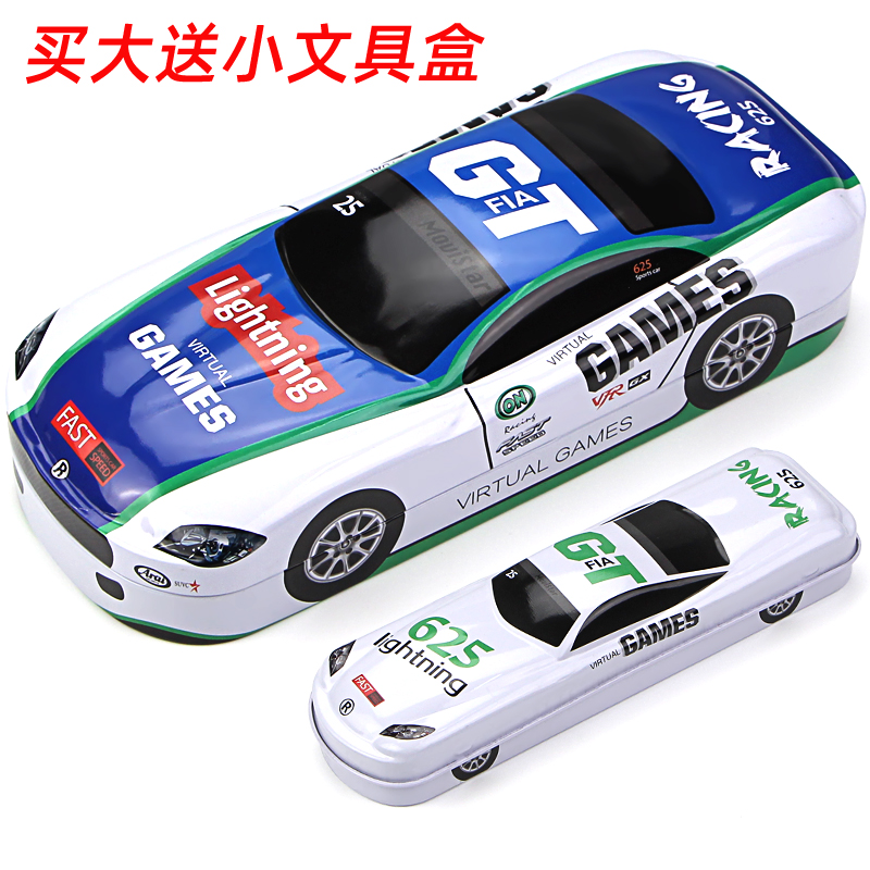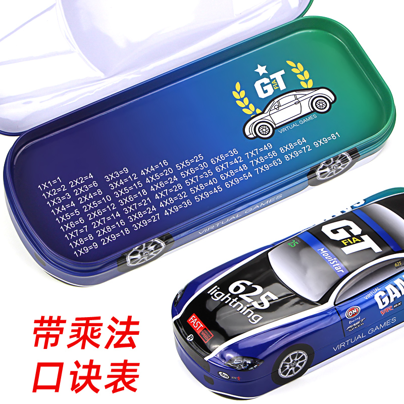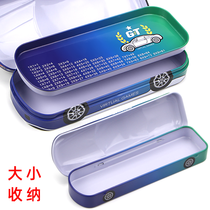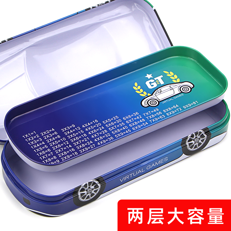 Writing case Male Primary School Children's Kindergarten Children Auto Iron Boy Boy Double Iron Box 1-3 Grade Creative Lead Pencil Case Tin Horse Mouth Iron Pen box Wholesale with Multiplicative Tips Table