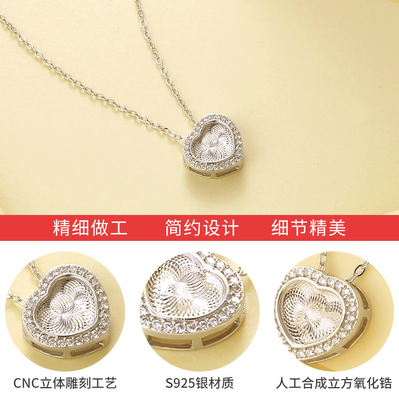 Heart-shaped phantom 925 silver necklace four-leaf straw phantom 925 silver necklace