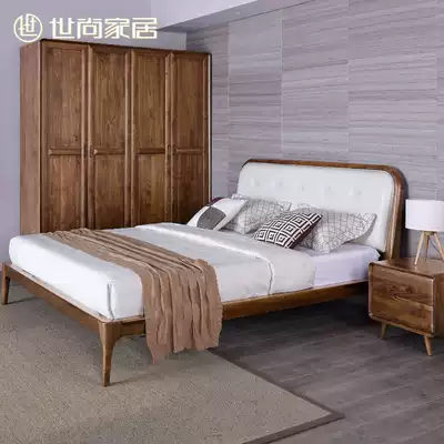 Shishang Yaxuan new Chinese solid wood bed double bed 1 8 meters master bedroom wedding bed modern 1 5 meters black walnut bed