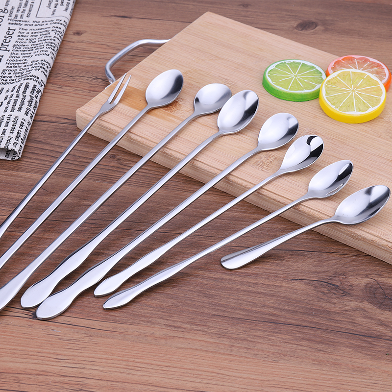 Stainless steel long handle coffee spoon milk tea dessert spoon seasoning spoon ice cream smoothie small spoon creative lengthened stirring spoon