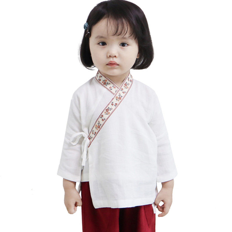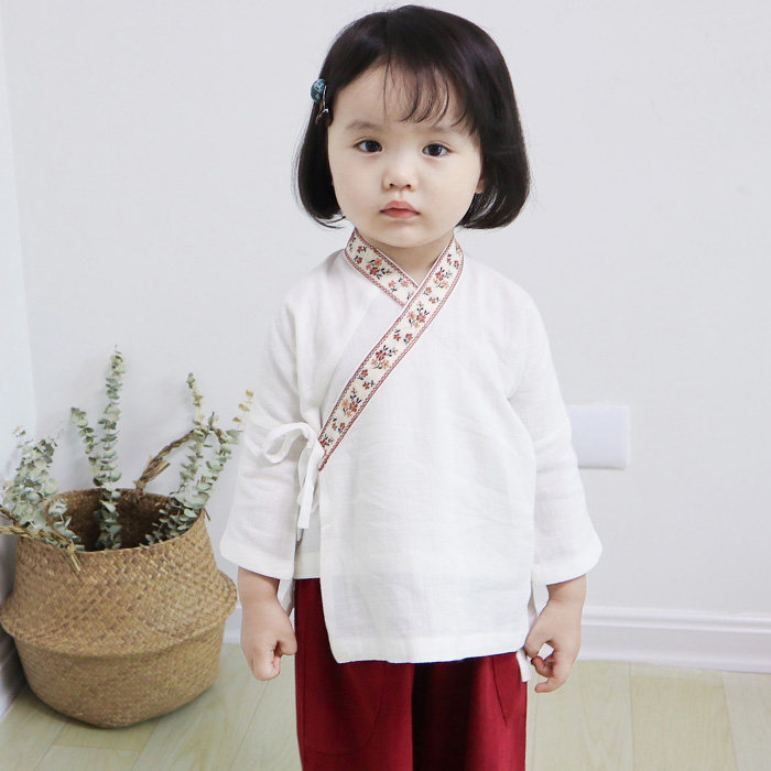 Children's lace Hanfu girls' Chinese school book children's performance baby's daily spring and autumn clothes cotton and linen long-sleeved top
