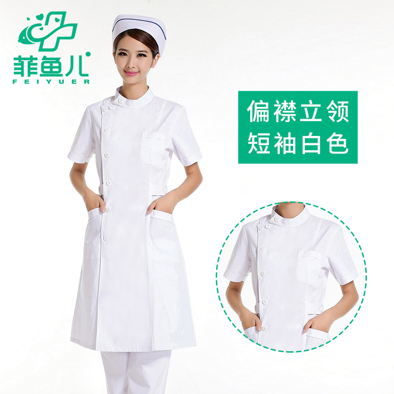 Filfish Pediatrist Short Sleeve Summer Women Drugstore Workwear Spring Partial Collar Beauty Salon Front Desk Hospital White Coat