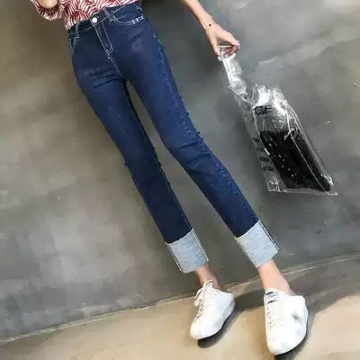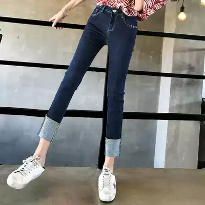 Straight jeans women loose nine points 2021 new spring and autumn Korean version of the curl edge small pants Joker slim