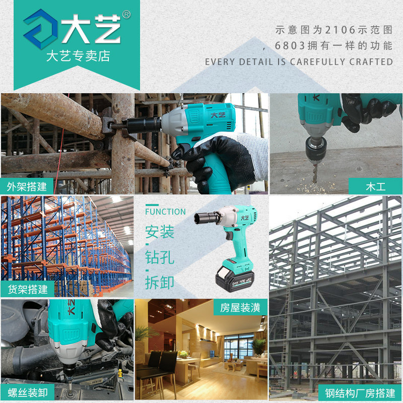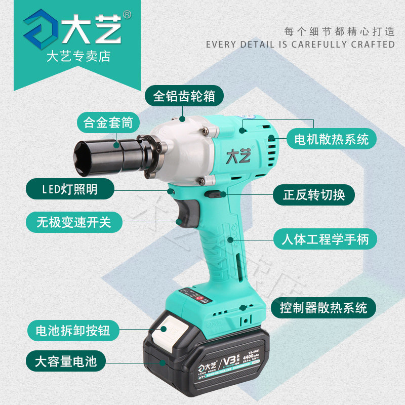 Great Art Electric Screwdriver Brushless Charging Wrench V3-6803 Pneumatic Wrench Woodwork Frame Subwork Electric Screwdriver Shock Wrench