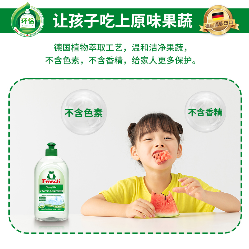 German imports Frosch fruits and vegetables Cleaned Essence Vitamin Fruits Vegetables No Fragrant Cutlery Wash Detergent Dishwashing Liquid