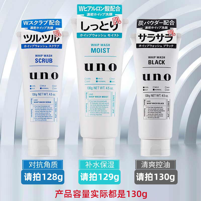 Japan UNO Wunuo men's facial cleanser moisturizing oil control to blackhead acne exfoliating facial cleanser deep cleaning