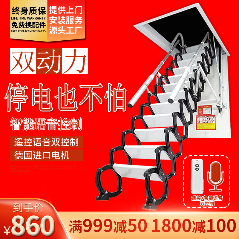 Thick loft telescopic staircase Home duplex folding lifting shrinkage villa indoor stretch fully automatic invisible ladder