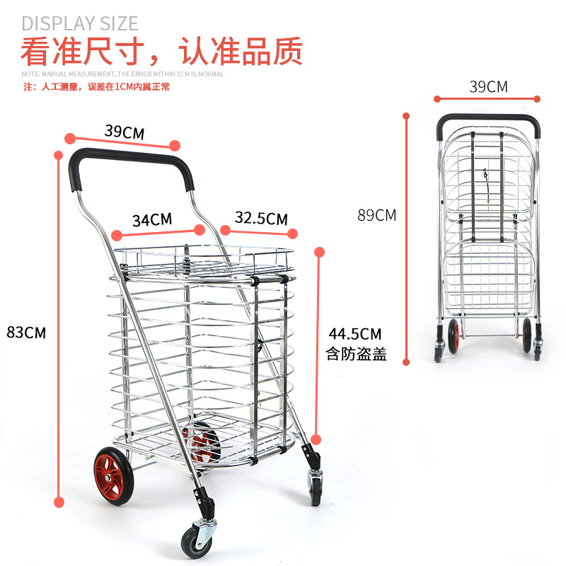 Increase the use of portable older shopping cart portable large number pulling car to buy groceries car booster can push aluminum alloy can be folded