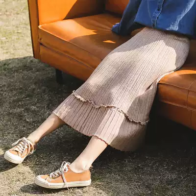 2020 Autumn New Korean solid color high waist hip knitted skirt long version slim pleated skirt skirt women