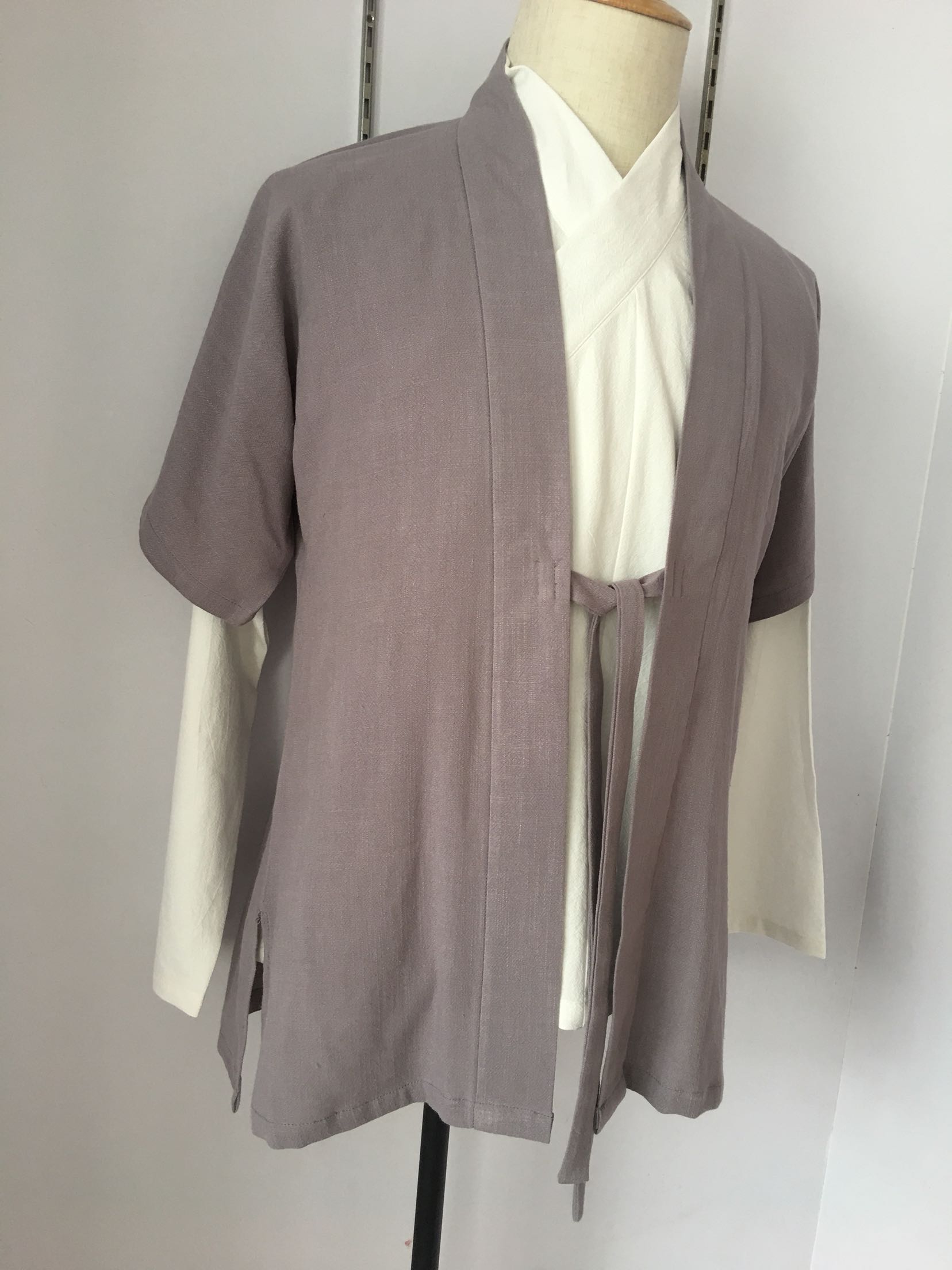 (Sauce Monarch) Original Hanfu Straight Collar Pairs Flap Half Arm Short Sleeve Jacket Linen China Wind Male Large Size Easy Daily