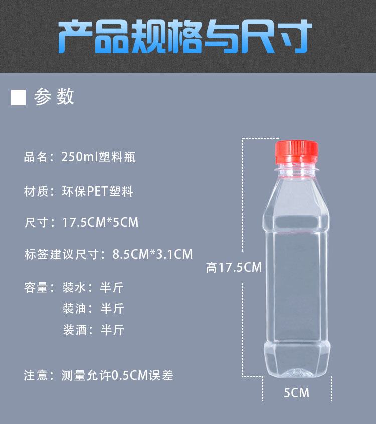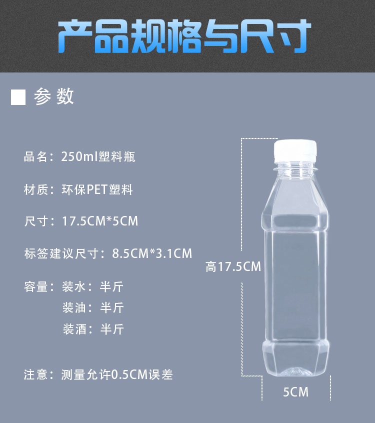 250ml food grade transparent plastic wine bottle PET liquor barrel home small oil jug sample bottle square bottle juice bottle