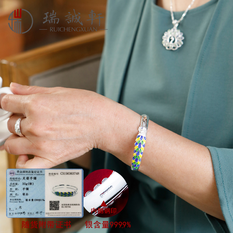Cloisonne silver bracelet female sterling silver young fashion peacock bracelet silver 9999 open solid foot silver bracelet