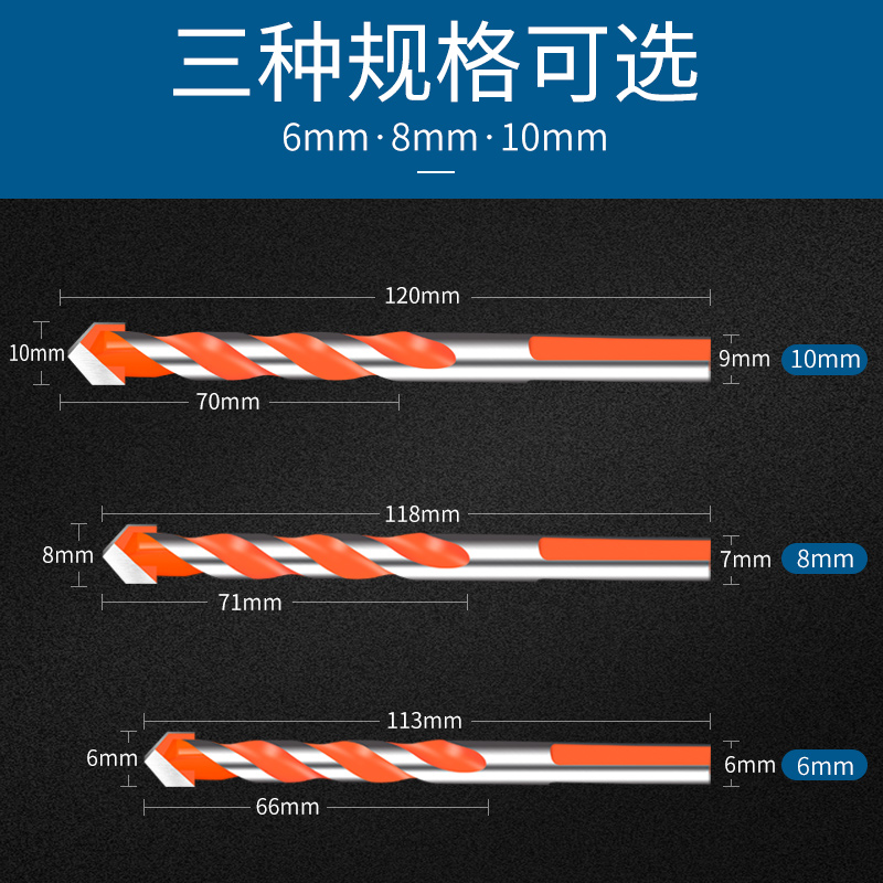 Tile drilling drill bit concrete tile glass ceramic electric drilling opening triangle multifunctional impact alloy punching