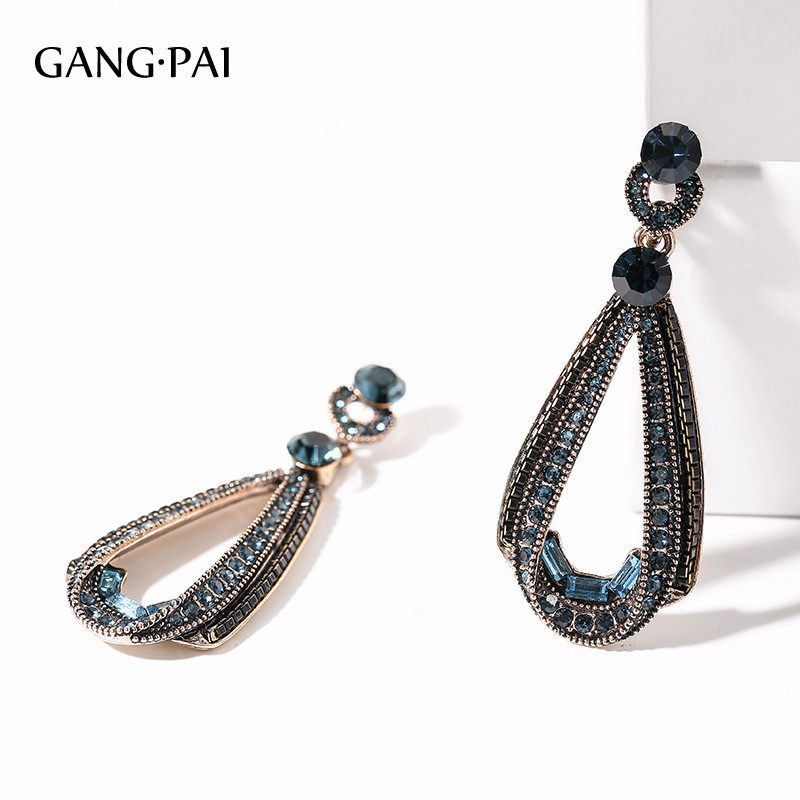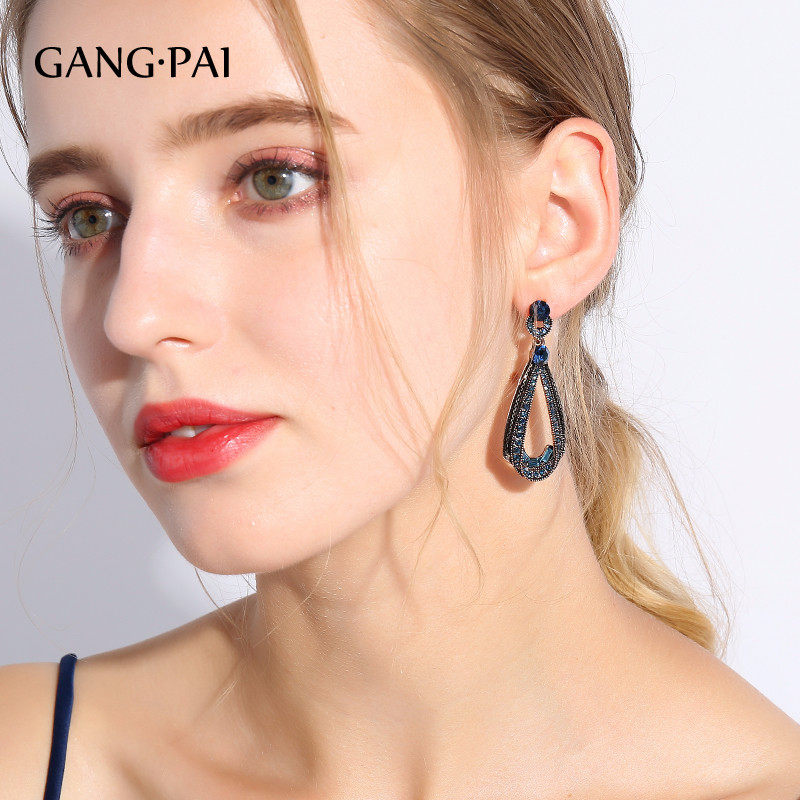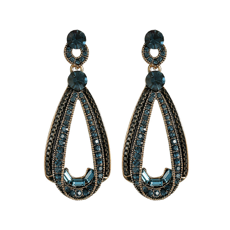 Blue ear clip without earhole wearing (spot) blue retro drop earrings