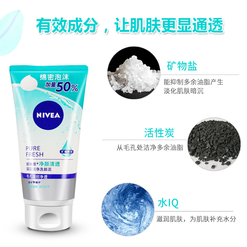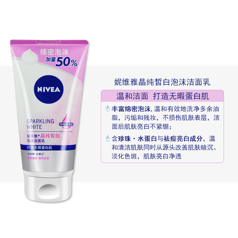 Nivea women's special cleansing milk crystal pure white deep cleansing cleansing milk oil control whitening foam moisturizing