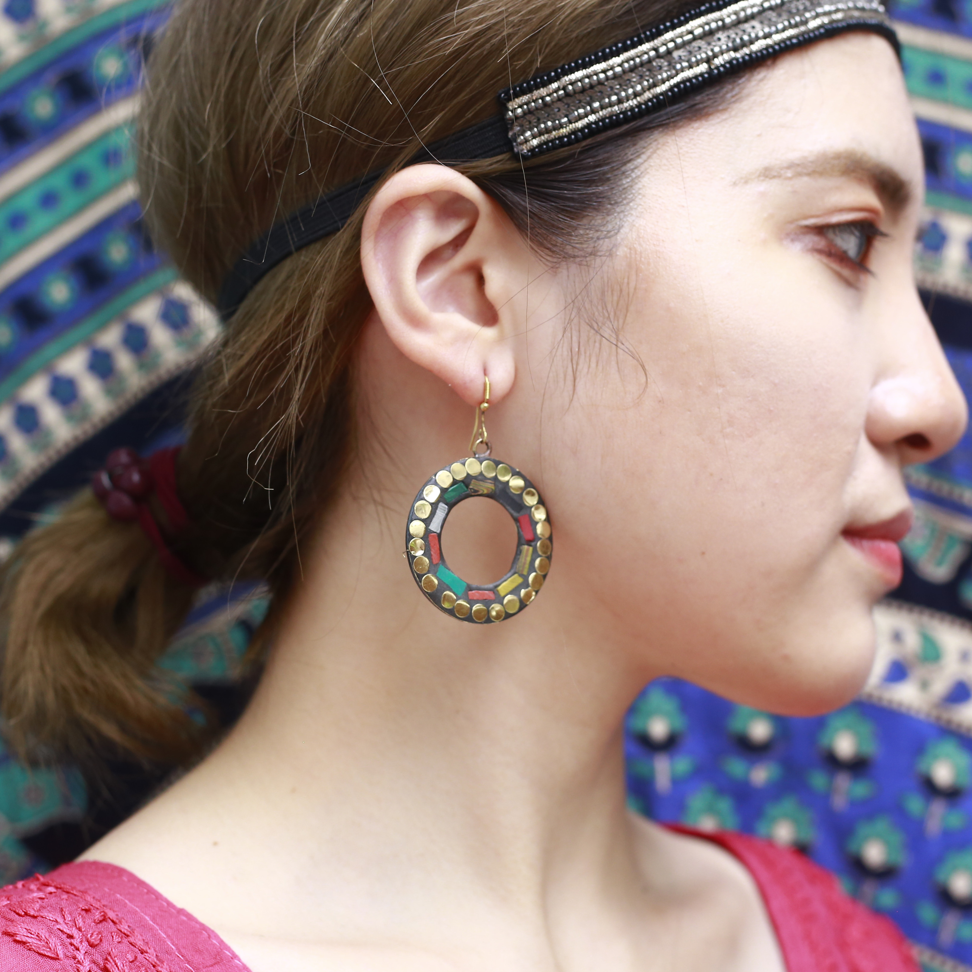 Odd Grocery Earring female temperament long - form pendant retro Tibetan round earring personality ear