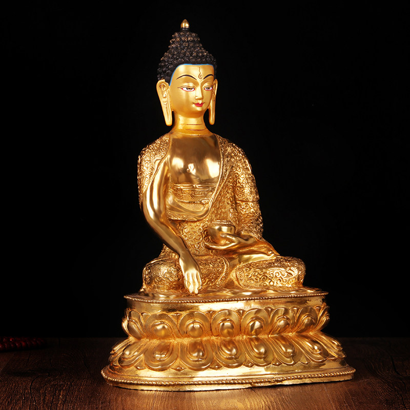 A 1 foot A double seat of Nepal Gilded Sculpture Pure Bronze Buddha Household Swing Shakyamuni Buddha