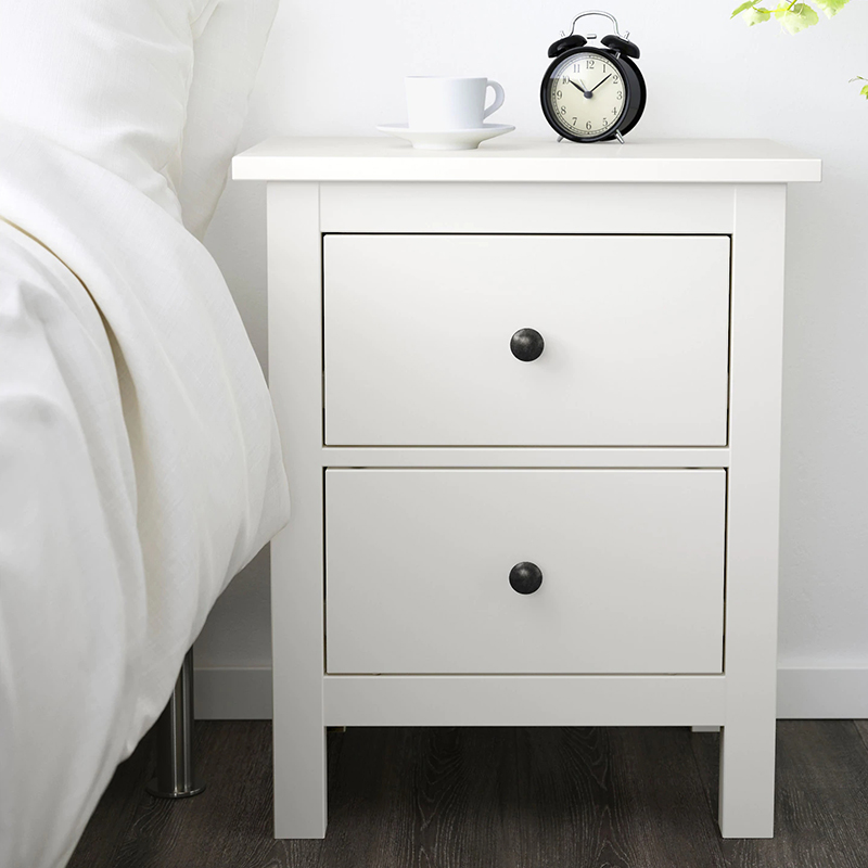 Solid wood bed cabinet Nordic modern minimalist style White American bed cabinet Chest of drawers Pine double drawers