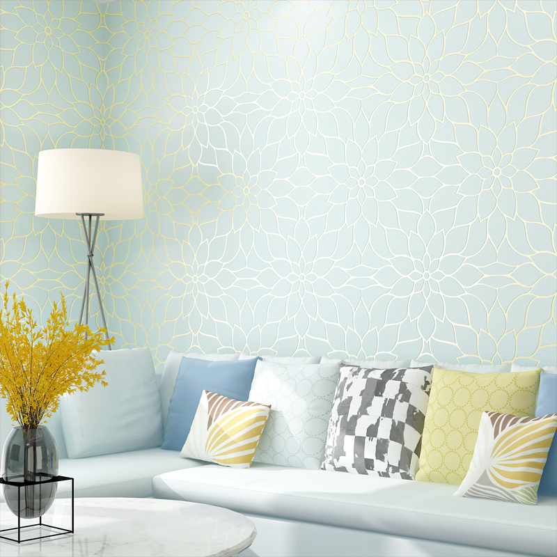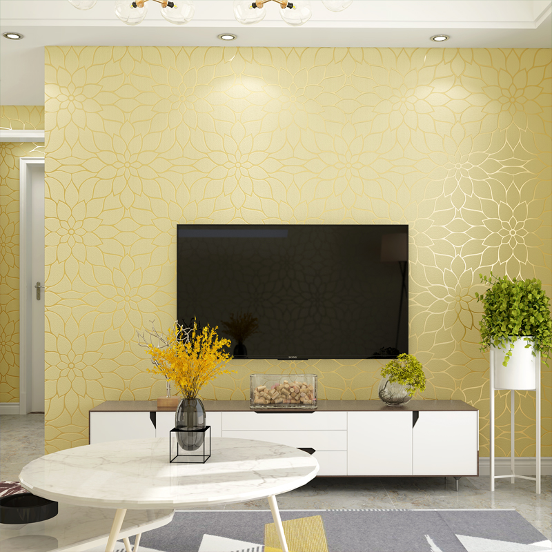 Modern minimalist pastoral non-woven wallpaper bedroom 3d fine embossed lotus flower dining room living room TV wallpaper