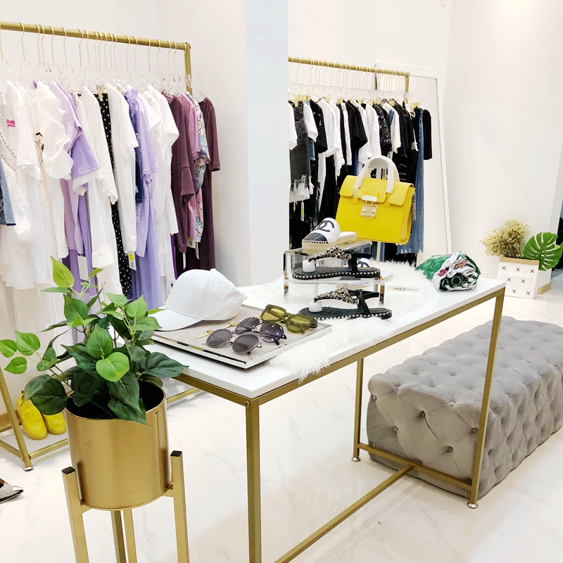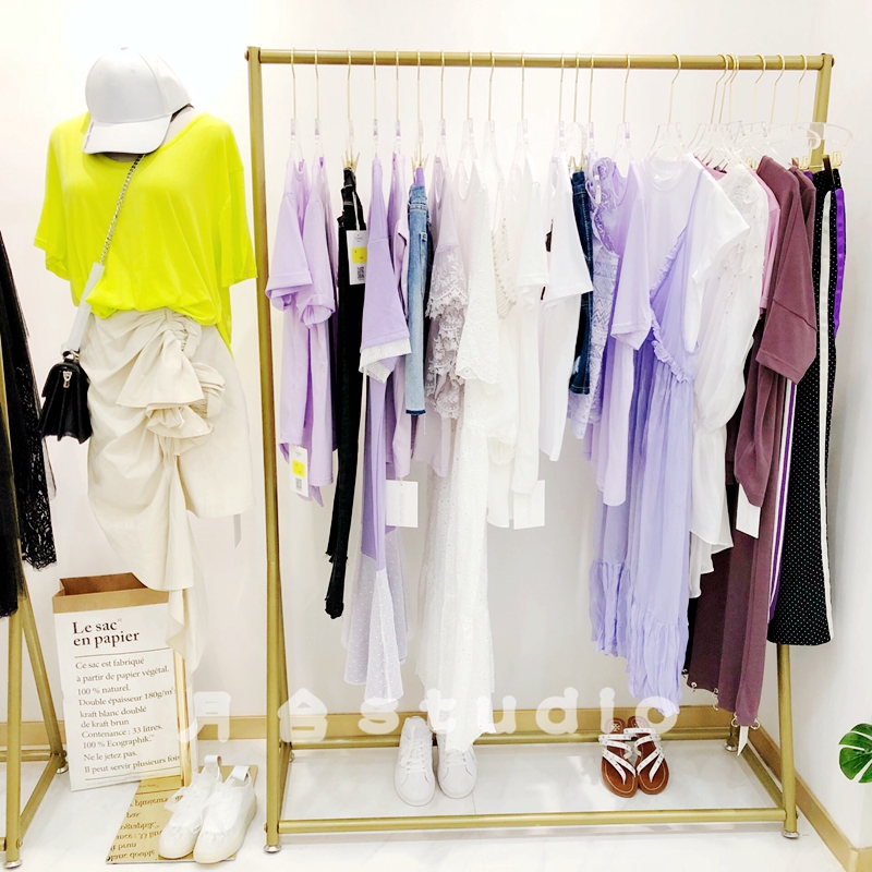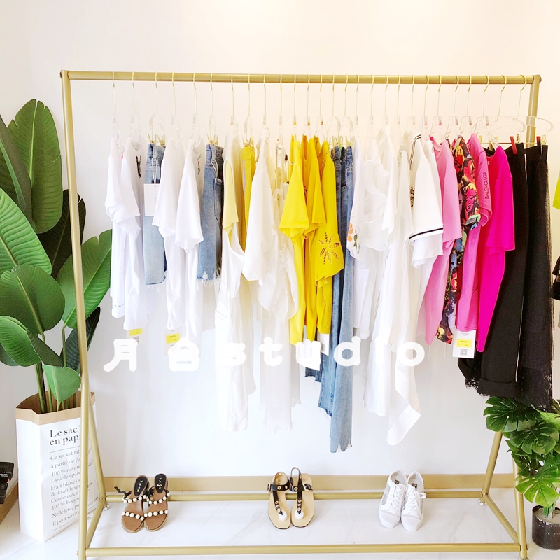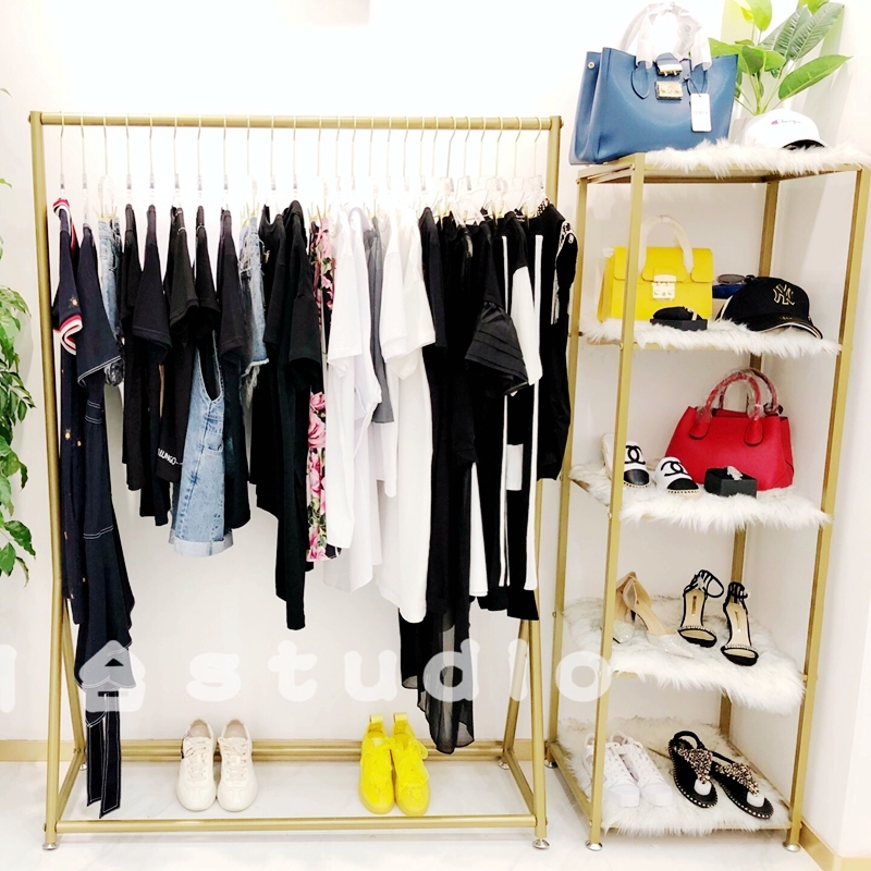 High-end gold clothing frame display frame simple floor display shelves packaging shelves women's clothes rack