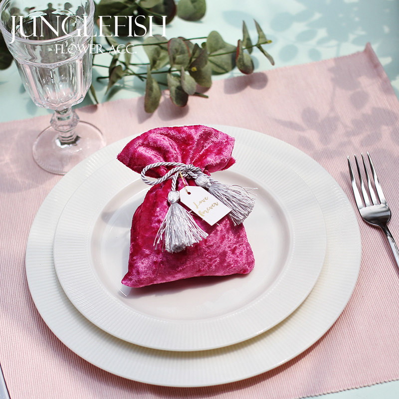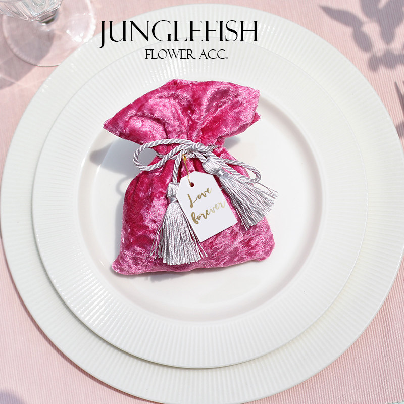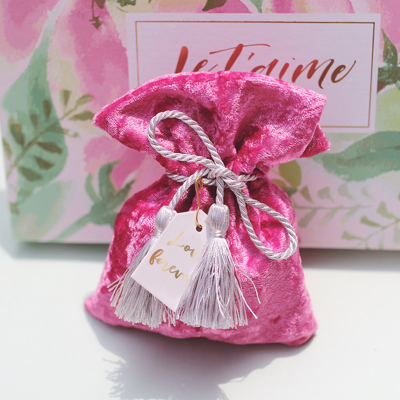 JF original creative rose pink velvet cloth wedding candy bag silver tassel drawstring Chinese wedding wedding candy box cloth bag