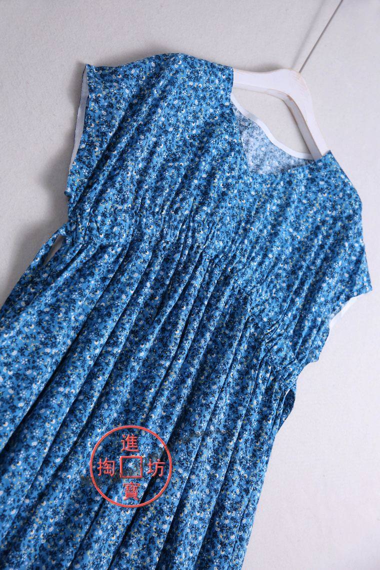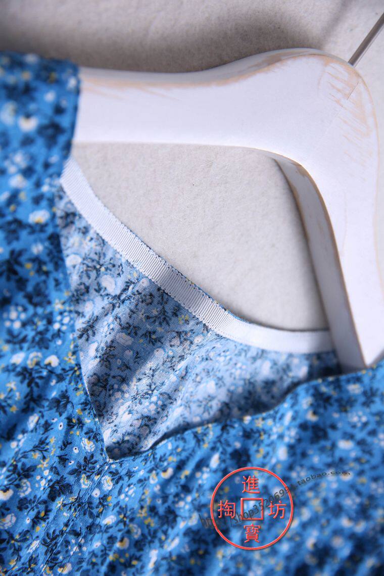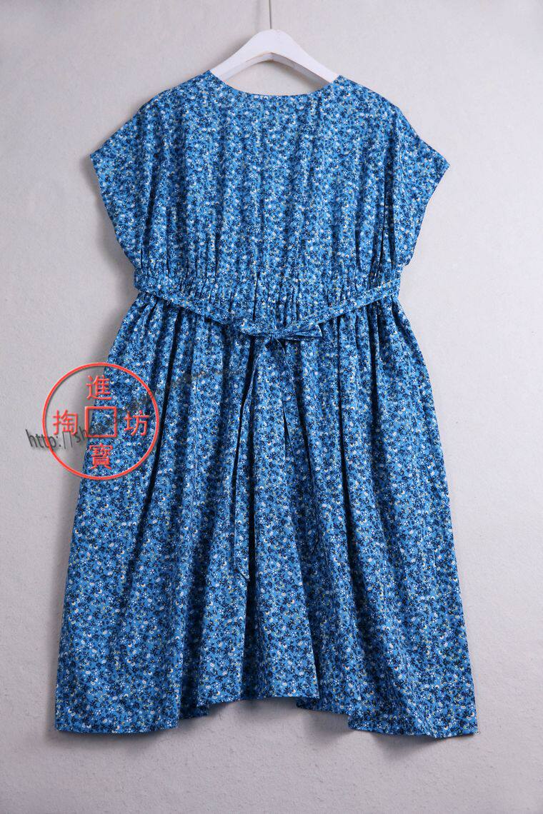 120D 0717 Pastoral Style Small Floral V-neck Loose Waist Tie Short Sleeve Pullover Dress
