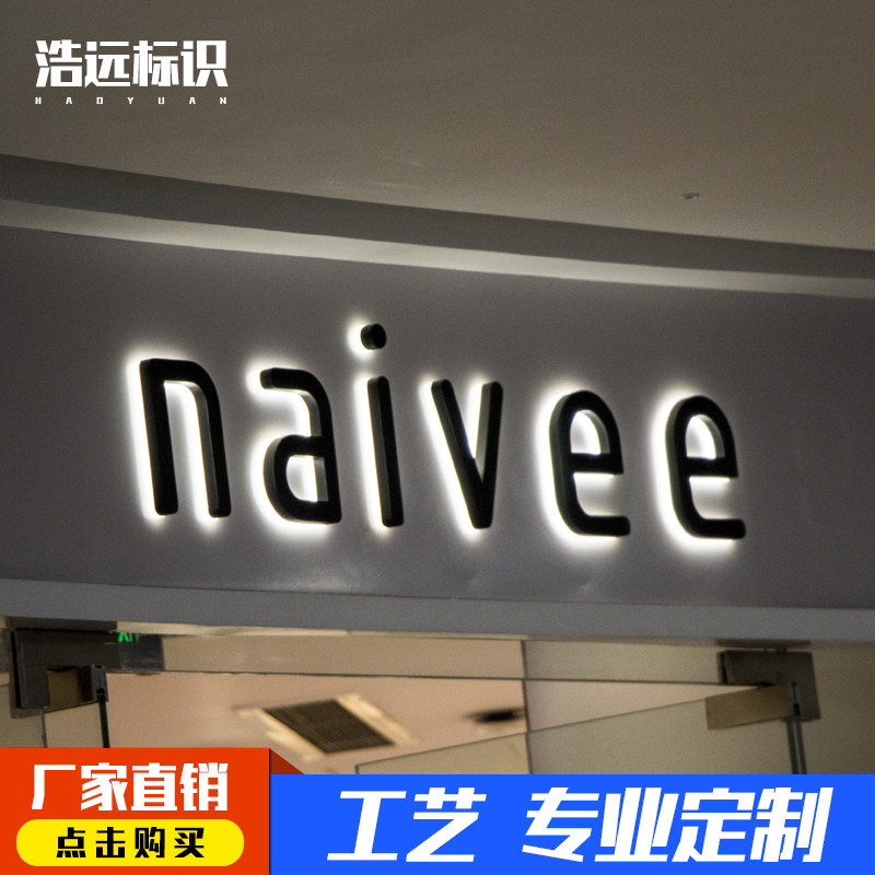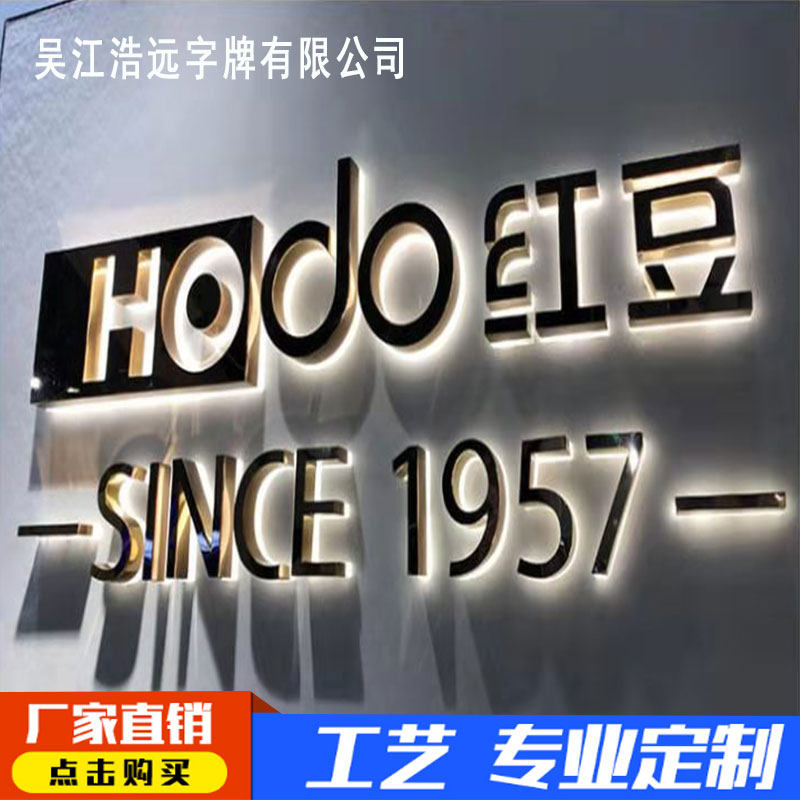Led titanium alloy stainless steel back luminous character door head billboard making door head sign set for metal word customization