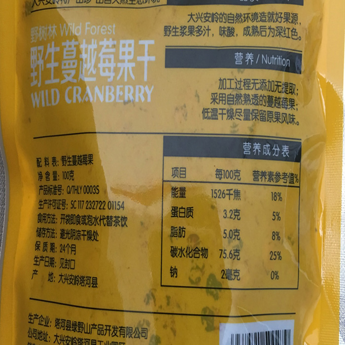 Daxing'anling wild forest dried cranberry dried cranberry no added sugar dried cranberry