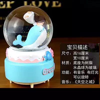 Crystal ball music box Sky City with snowflake luminous rotating creative birthday gift special practical small fresh