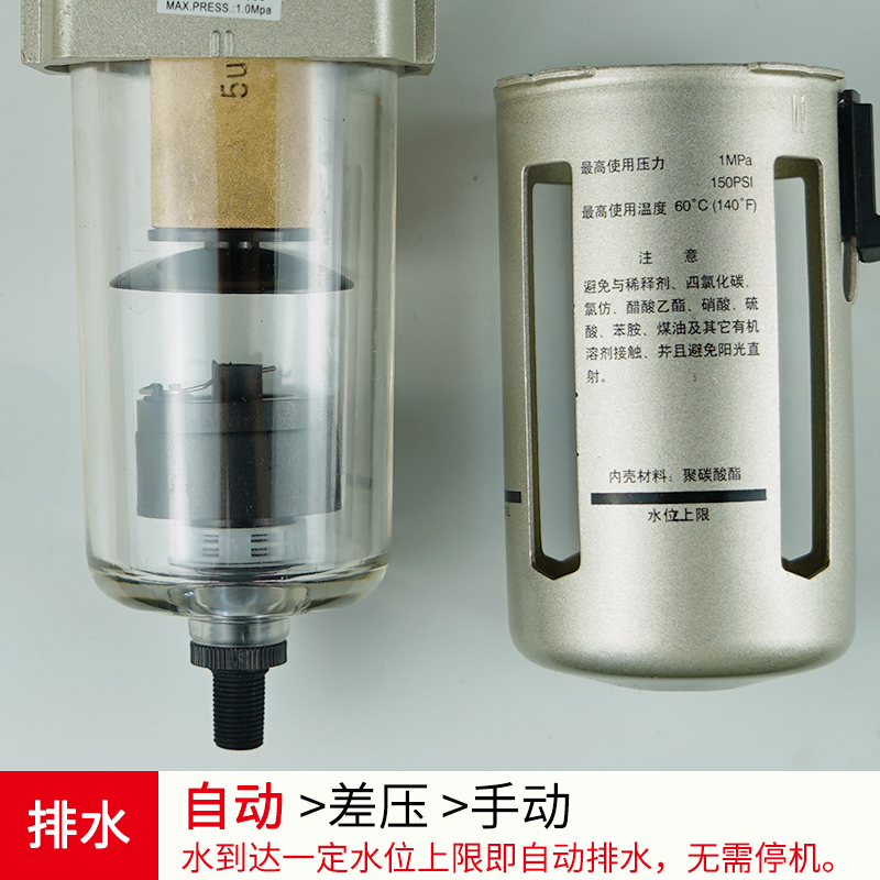 Mountain-resistant oil-water separator Automatic drainage compressed air spray paint blow dust pressure regulation filter 4 points 1 inch connector
