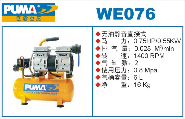 Giant bully puma air compressor WE125A 125076130 silent oil-free direct air compressor cheer
