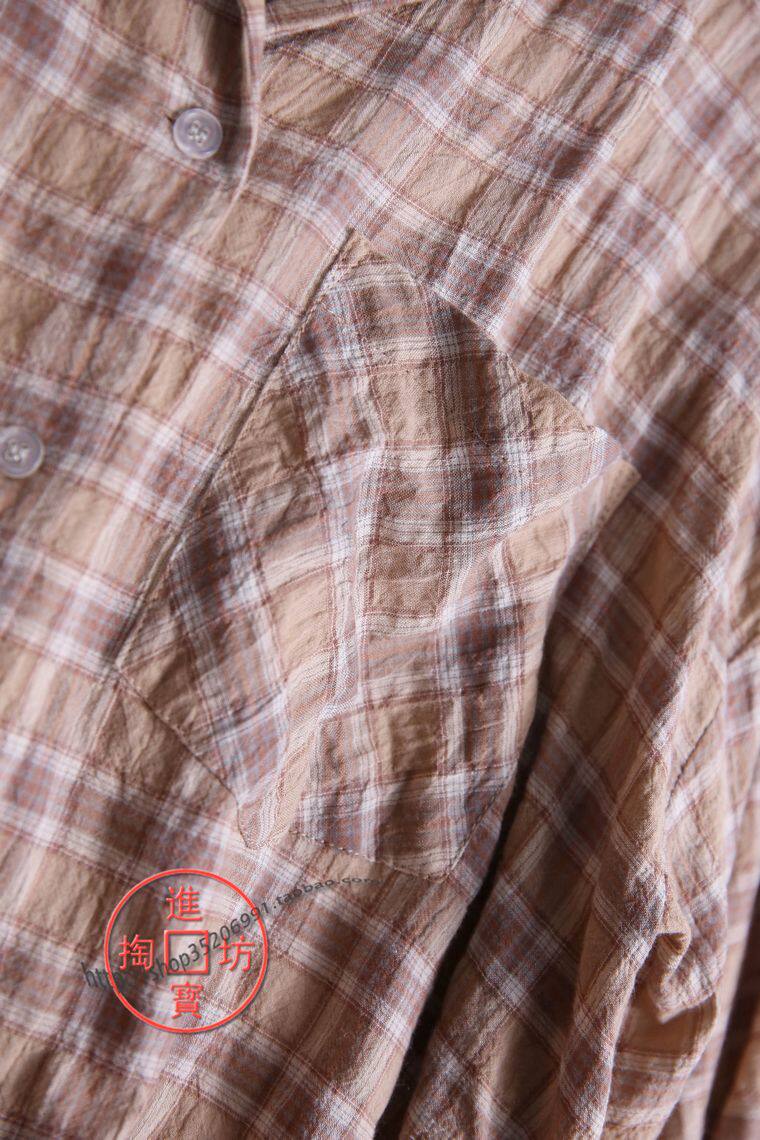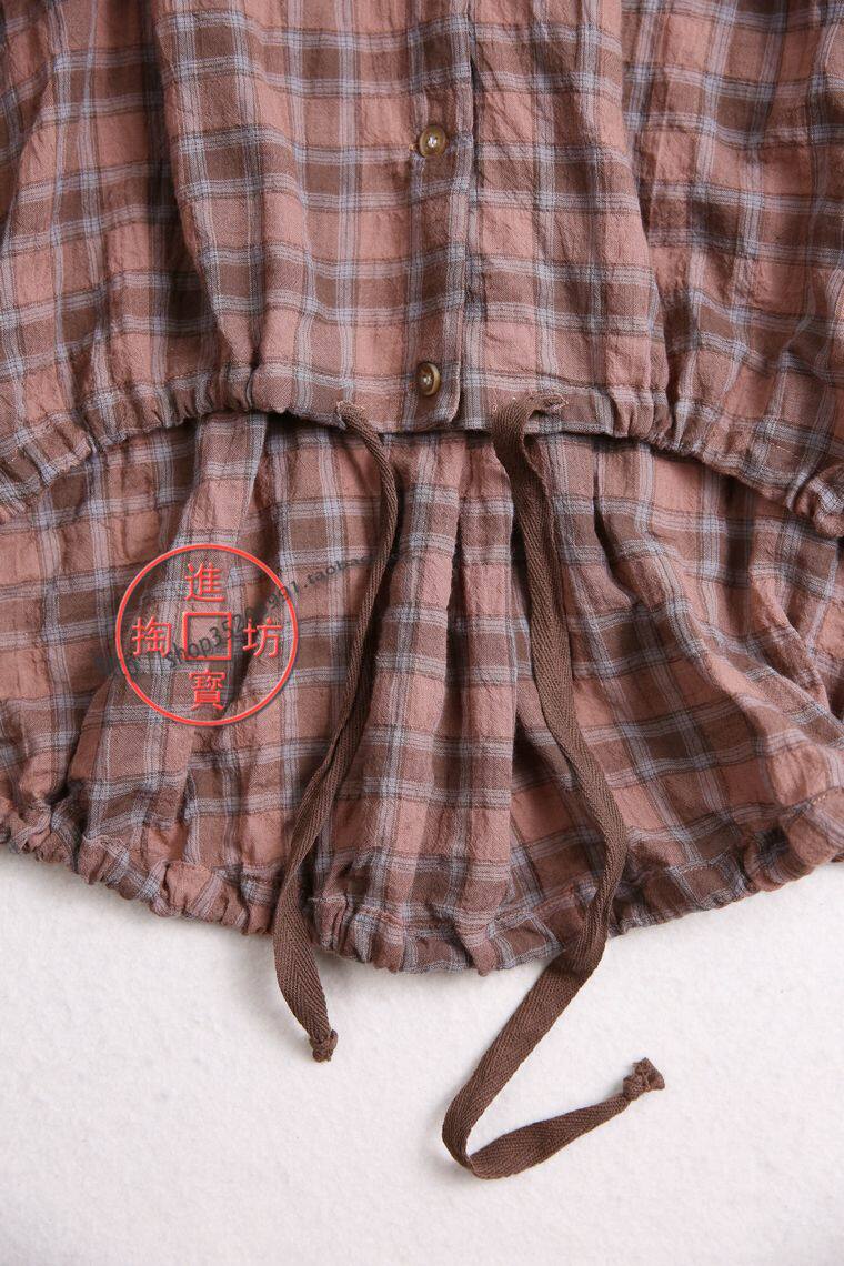 046B 0717 loose easy-going and downswing drawstring constriction of grit long sleeve button with open body shirt