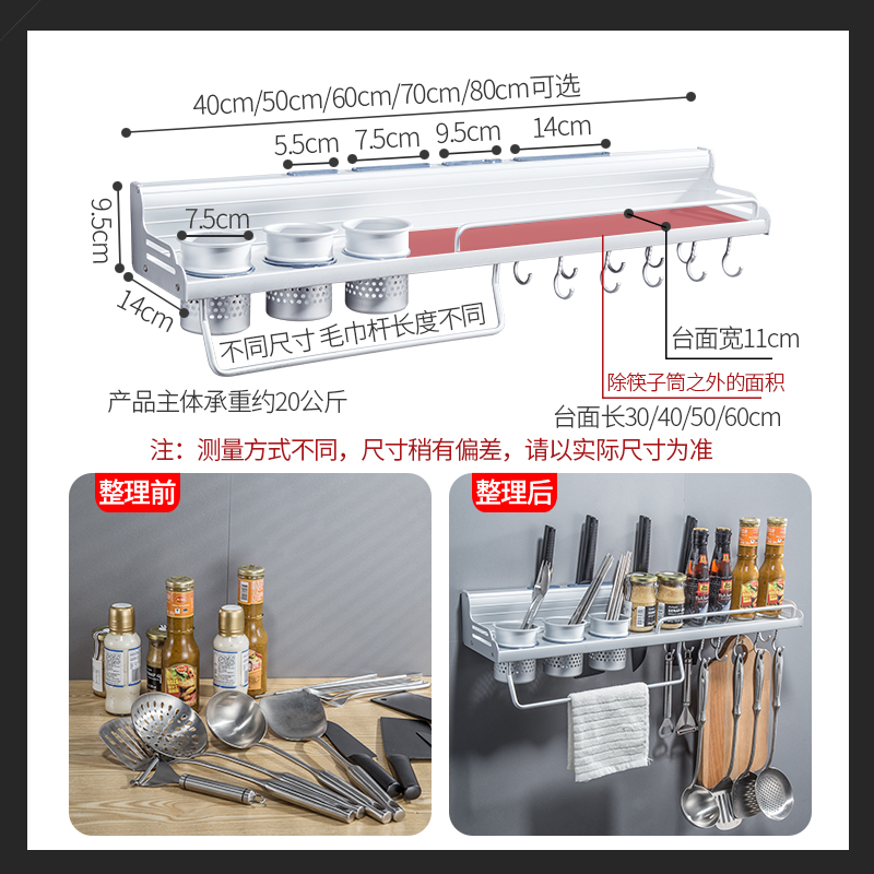 Knife holder and chopstick holder integrated storage condiment box household multi-functional wall hook rack kitchen punch-free wall