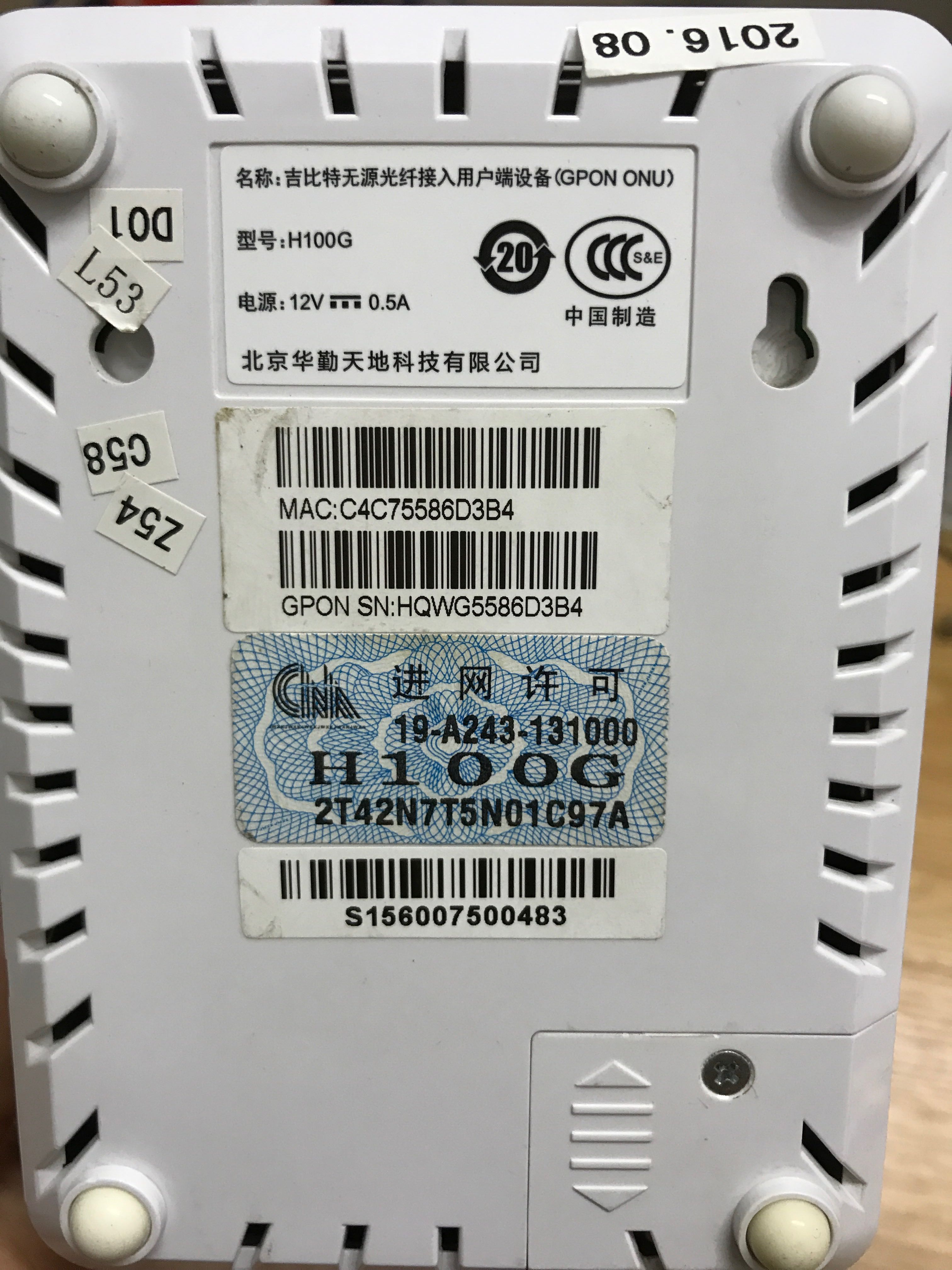 Beijing Huaqin Tiandi Technology H100G Gigabit Passive ONT Access GPON Telecom Optical Cat Promotion Full