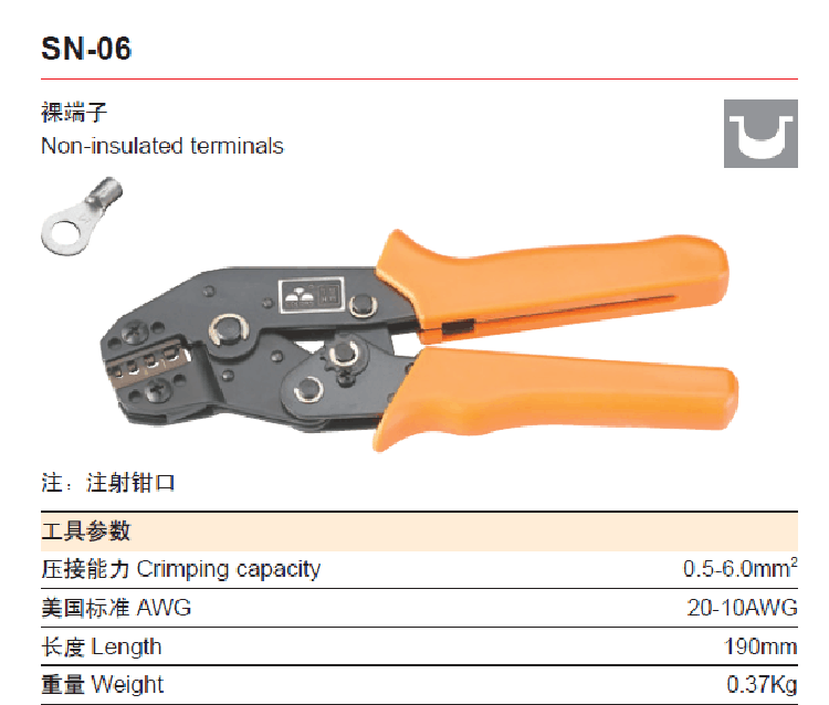 Cold pressure terminal crimping pliers Huasheng SN-06 Manual tool bare terminal press pliers Mini European style wire pliers